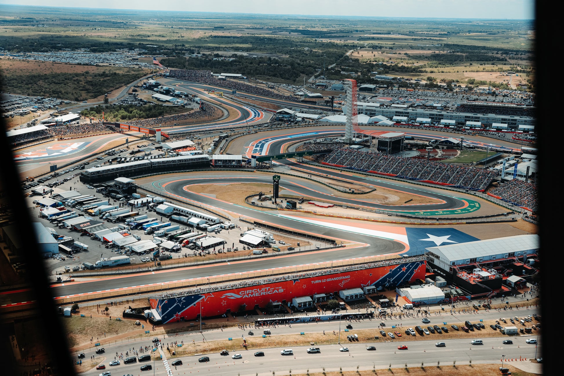 Catch intense braking duels and overtaking moments as drivers dive into Turn 12, all from a high-perched grandstand offering a clear view of the thrilling stadium-style section.